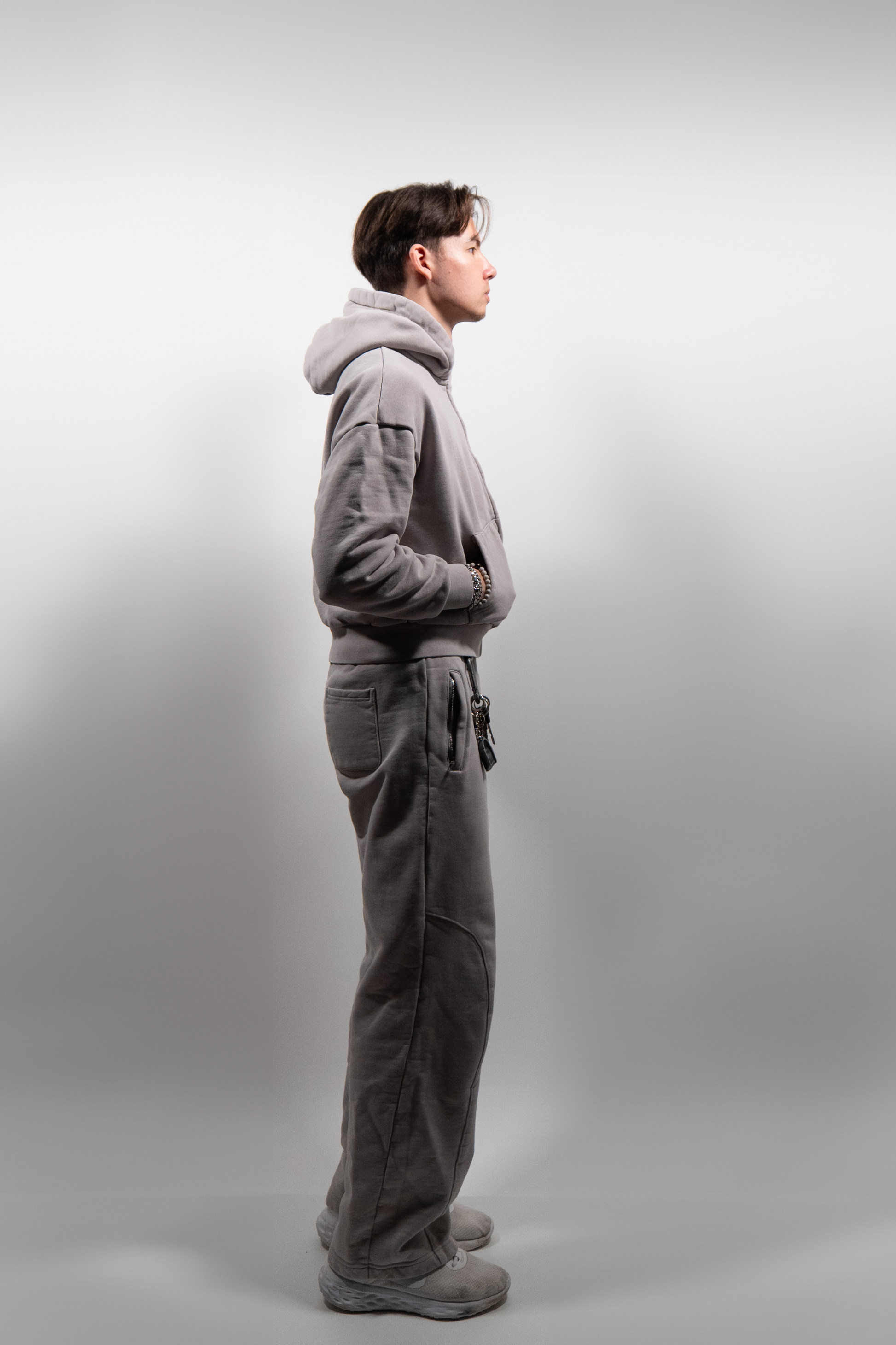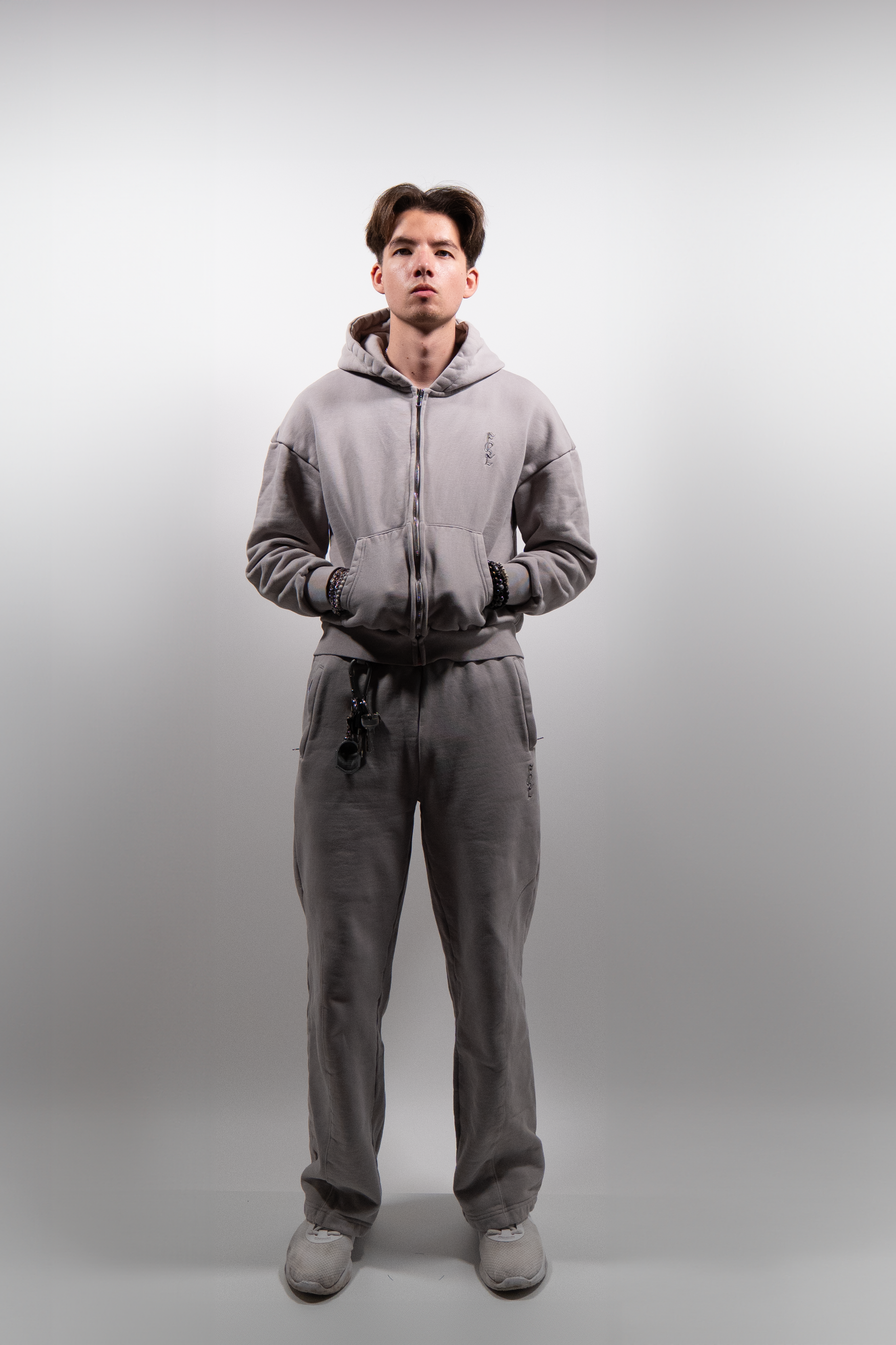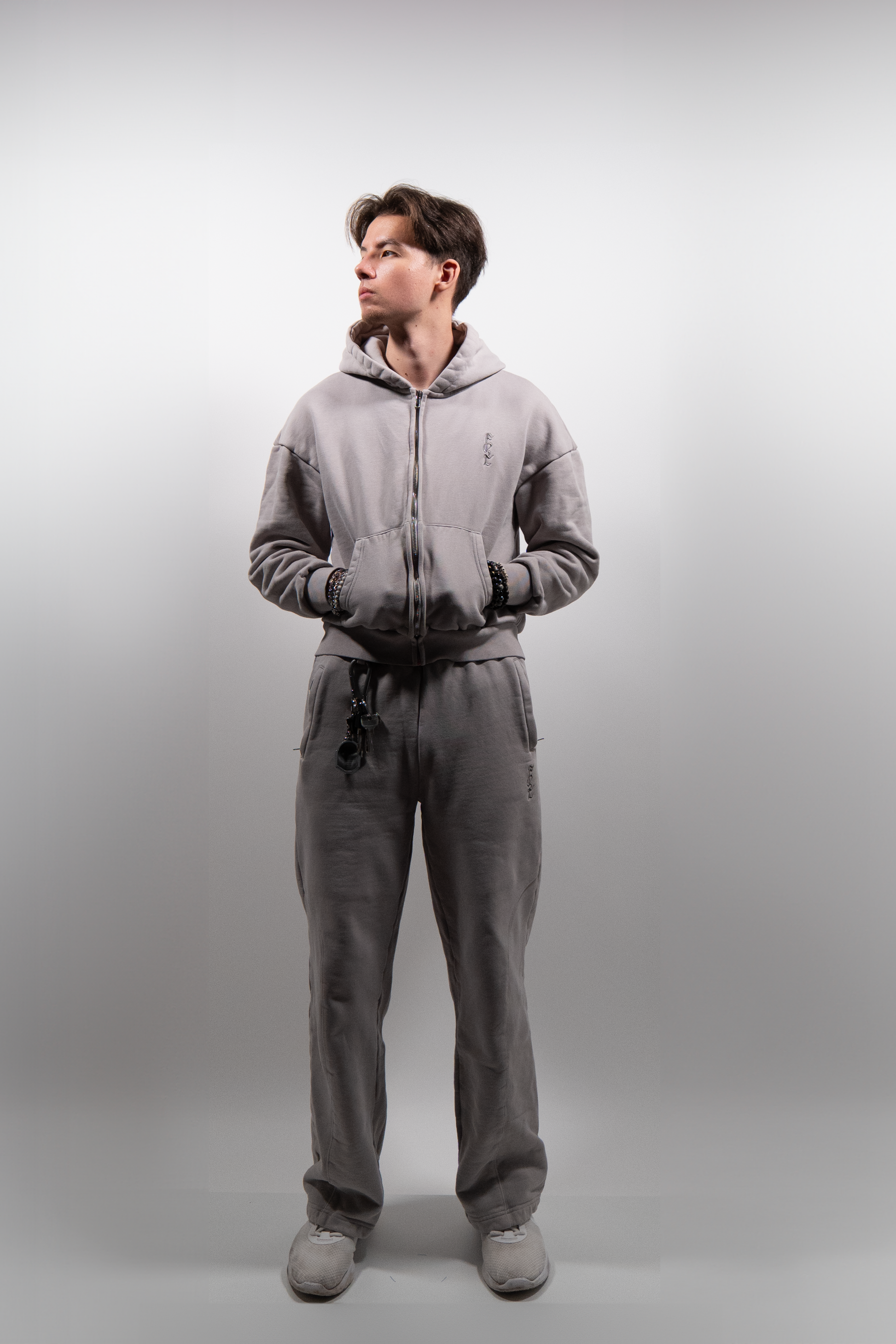 - Model is 1,79 m, draagt maat S Zip Hoodie en M Broek